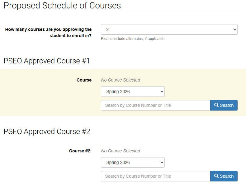 # of Approved Courses - Select a number between 1-5 to indicate the courses a student is approved to enroll in. This number should include any alternates, if applicable.
